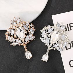 Hight chất lượng tinh thể kim cương Trâm quần áo phụ kiện lớn nước thả Mặt dây chuyền trâm cài hoa cổ áo Pin